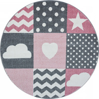 Dywan dla dzieci CHMURKI I GWIAZDKI Szaro-Różowe Koło KIDS DZIDZIA